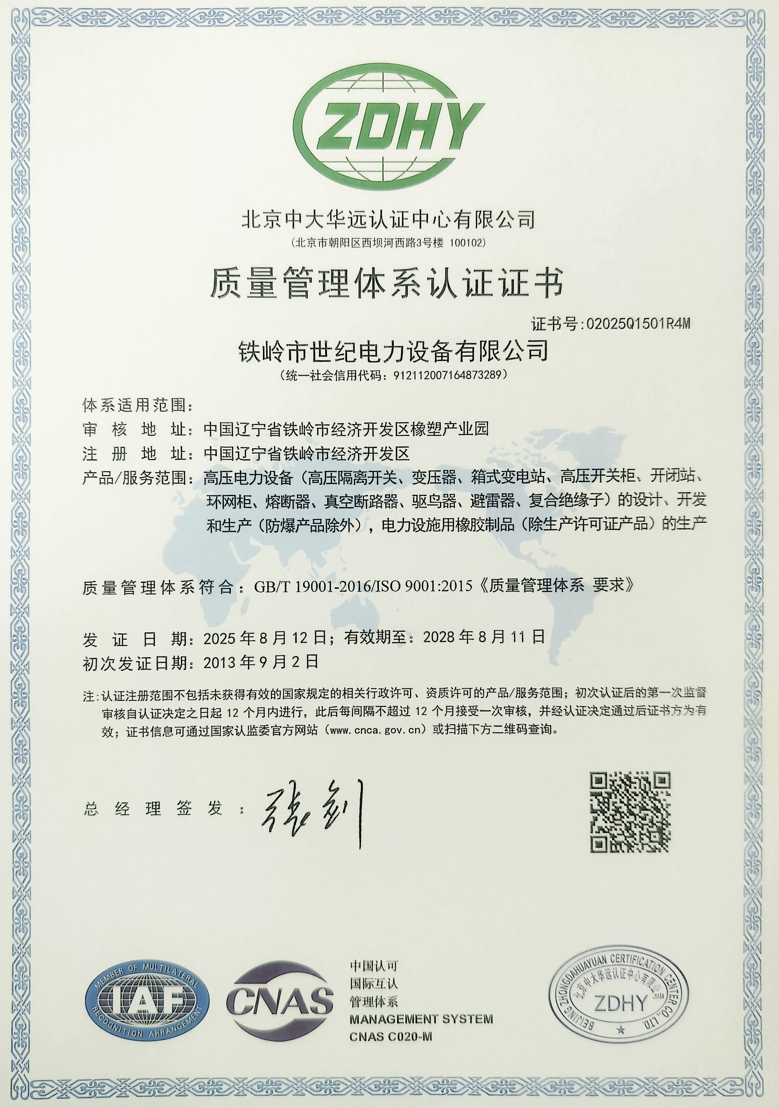 鐵嶺市世紀電力設備有限公司是集科研開發(fā)、生產(chǎn)制造、用戶服務于一體的國家高新技術企業(yè),始建于1999年,位于鐵嶺經(jīng)濟開發(fā)區(qū),占地面積5萬余平方米,建筑面積2萬余平方米。主要從事國家電網(wǎng)配套戶外高低壓隔離開關、電力電纜、變壓器成套裝置、高低壓開關柜、箱式變電站、絕緣子等產(chǎn)品的研發(fā)、生產(chǎn)和銷售。公司現(xiàn)有國家發(fā)明專利6項、實用新型專利9項,公司通過了ISO9001國際質(zhì)量管理體系認證、ISO14001環(huán)境管理體系認證和ISO 45001職業(yè)健康安全體系認證。